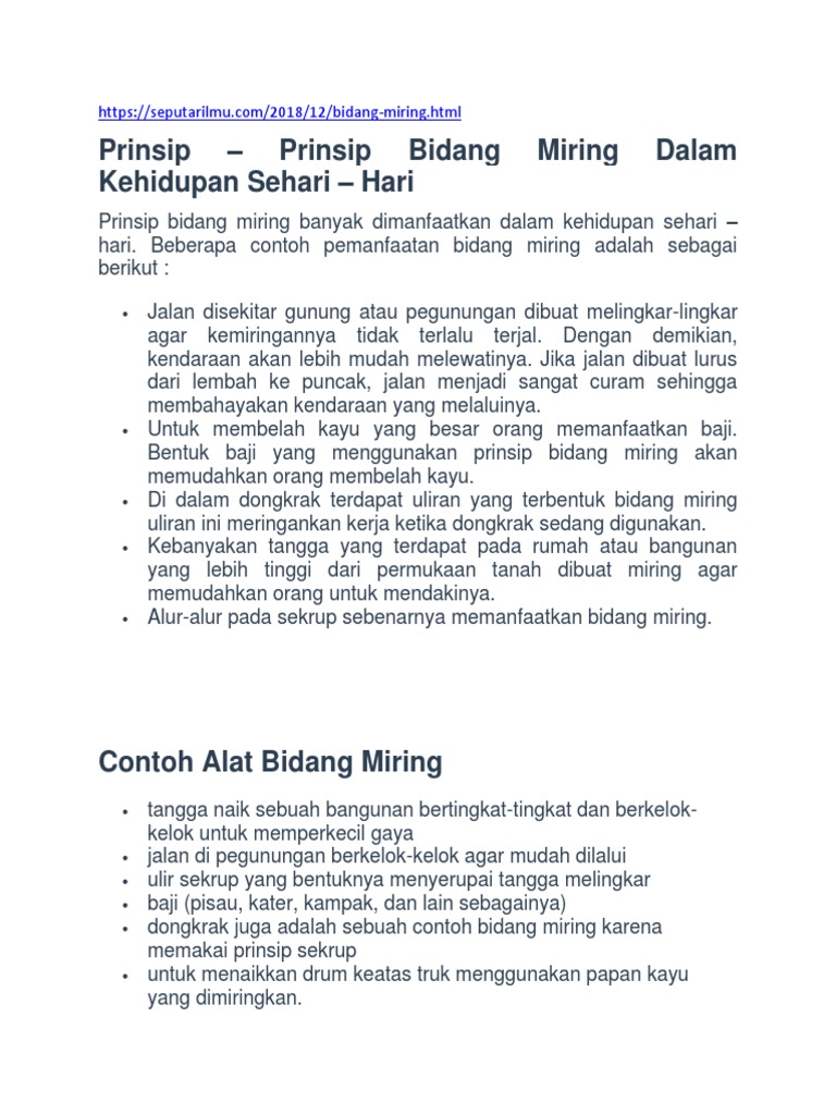 Pesawat Sederhana Yang Menggunakan Prinsip Bidang Miring Adalah / 20 Soal Pesawat Sederhana Pilihan Ganda Dan Jawaban / Ternyata prinsip kerja pesawat sederhana itu banyak ditemukan di lingkungan kita.. Prinsip kerja katrol adalah mengubah arah kerja gaya sehingga beban bisa terangkat dengan mudah. Benda berikut yang menerapkan prinsip bidang miring adalah. Usaha dan pesawat sederhana draft. Semakin tipis bentuk baji, semakin mudah kerja yang dilakukan. Kater/pemotong adalah contoh pesawat sederhana yang menggunakan prinsip bidang miring.