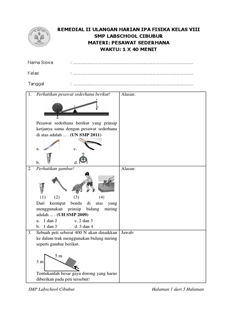 Katrol adalah pesawat sederhana berupa roda beralur yang dikelilingi oleh tali. Panjang papan tersebut 1,5 m. Bidang miring merupakan salah satu jenis pesawat sederhana yang digunakan untuk memindahkan suatu barang menggunakan bidang miring. Orang yang memindahkan drum ke dalam bak truk dengan menggunakan papan sebagai bidang miringnya. Ternyata prinsip kerja pesawat sederhana itu banyak ditemukan di lingkungan kita. Bidang miring adalah suatu permukaan datar yang memiliki suatu sudut dengan salah satu ujungnya lebih tinggi dari ujung yang lain dan merupakan salah satu jenis pesawat sederhana yang sering digunakan untuk memindahkan benda ke tempat yang lebih tinggi. Pesawat sederhana adalah alat yang digunakan untuk mempermudah pekerjaan manusia. Alat yang menggunakan prinsip tuas jenis kedua adalah. Sebutkan alat yang bekerja menggunakan prinsip tuas jenis ketiga! Semakin tipis bentuk baji, semakin mudah kerja yang dilakukan. Sebuah papan digunakan sebagai bidang miring. Semua benda yang memiliki bidang miring atau bekerja dengan prinsip kemiringan disebut dengan bidang miring. Dengan bantuan bidang miring gaya.